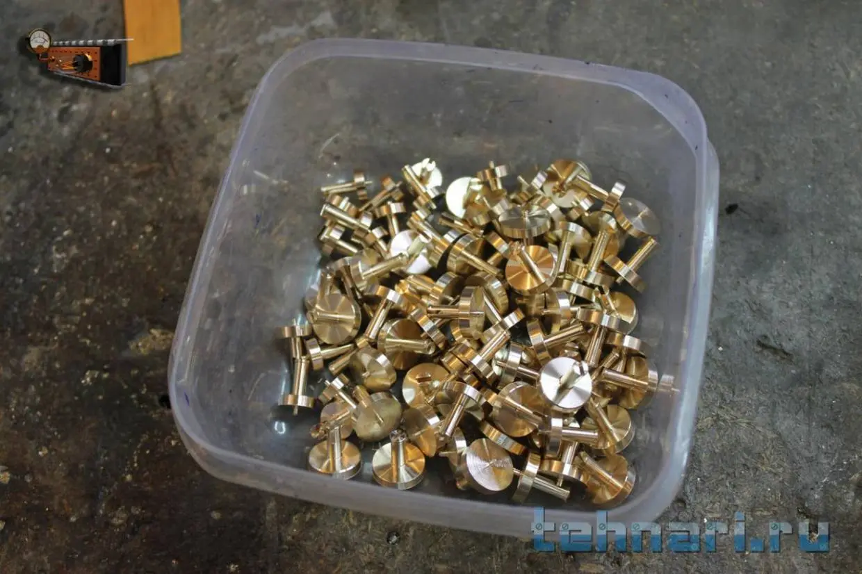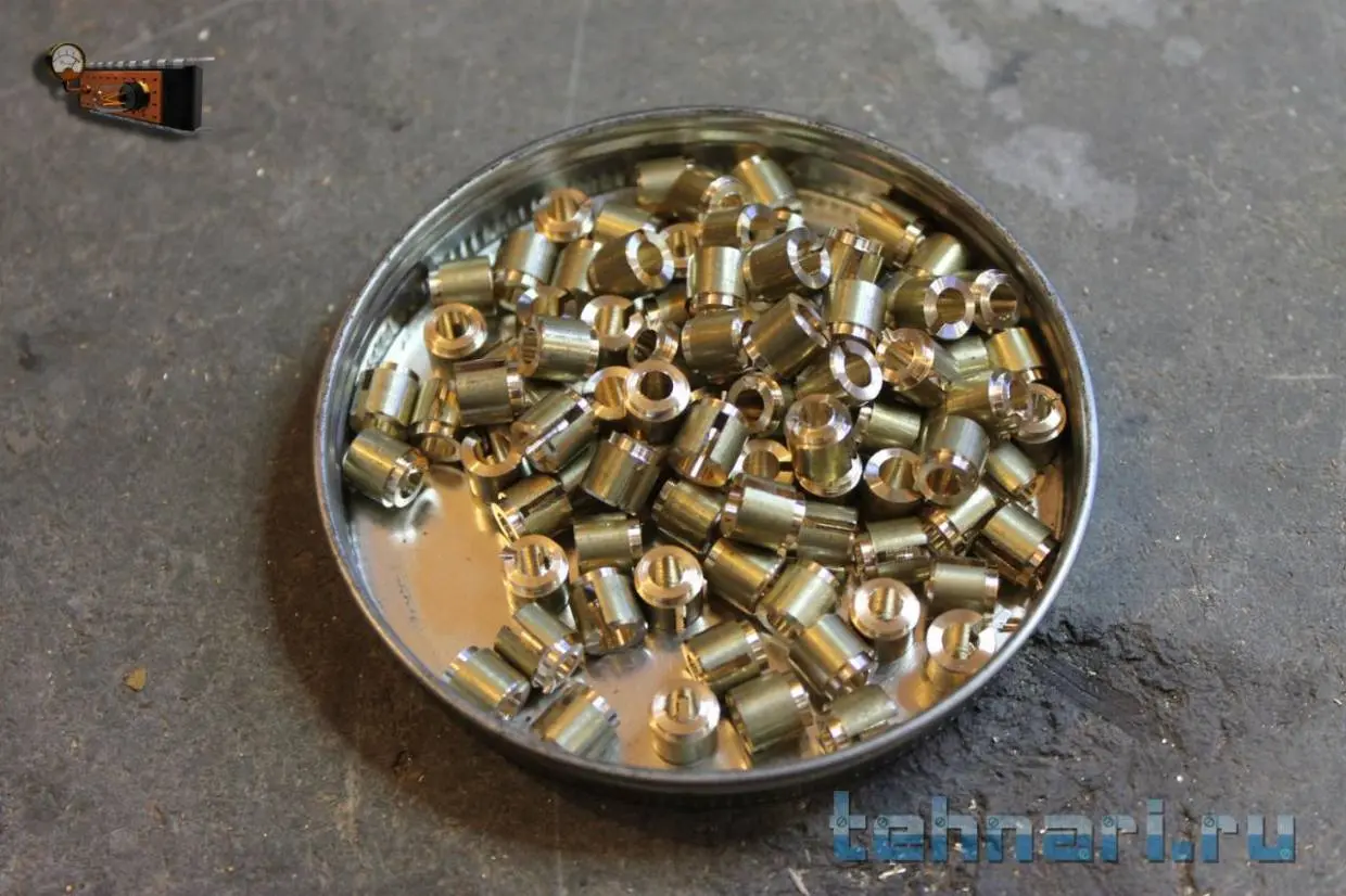 Далее изготавливаю втулки для этих кнопок. Делать их пришлось в несколько шагов.