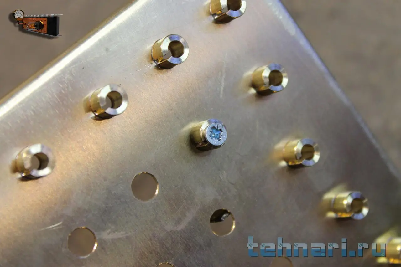 Для их ровной фиксации на момент пайки пришлось сделать простое приспособление.