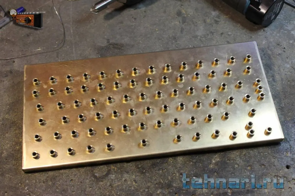 Втулки впаиваются в основание будущей клавиатуры.