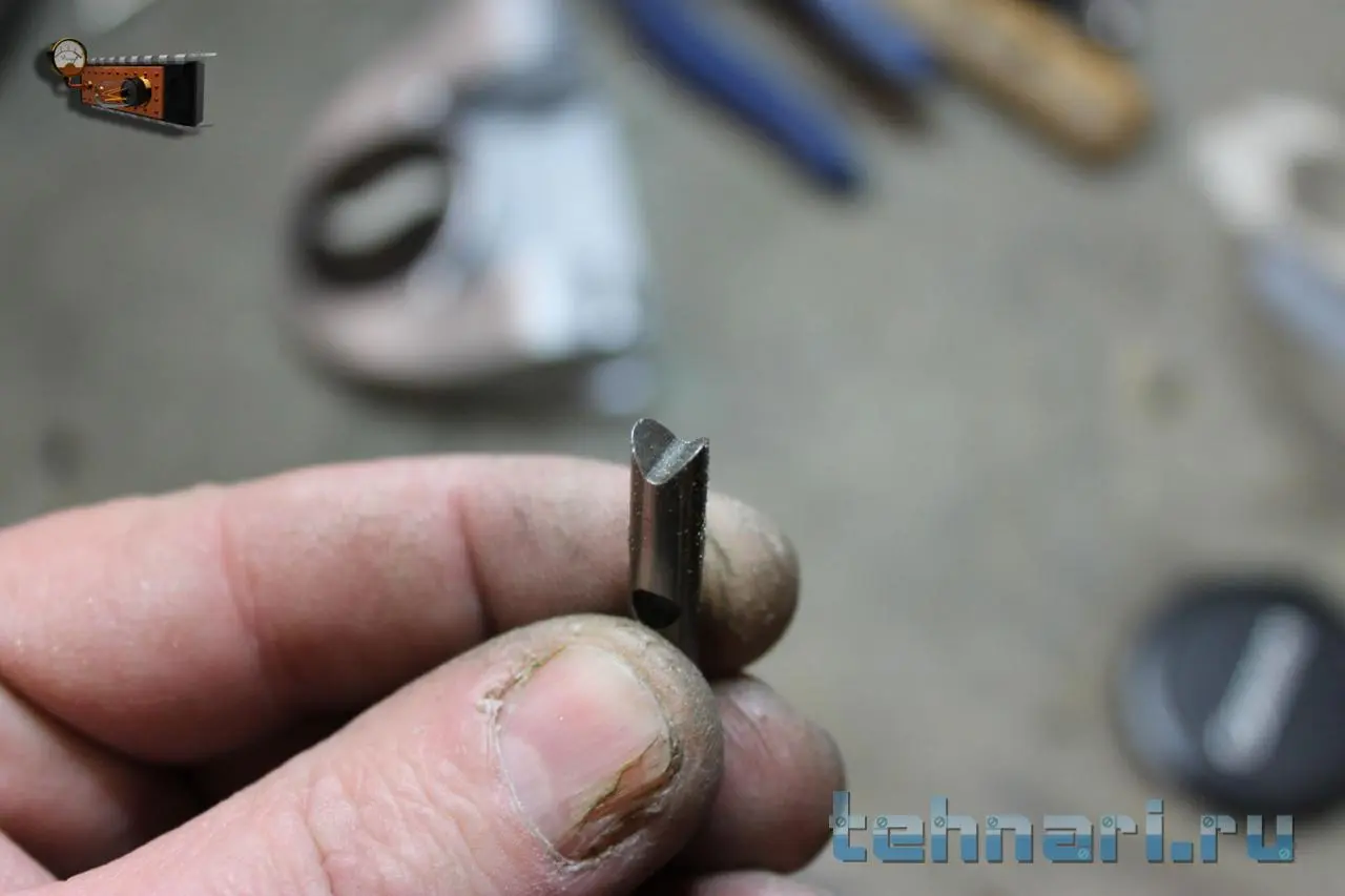В ножке кнопки сделан разрез, он служит для крепления кнопки во втулке: вставляю кнопку и разжимаю получившиеся усики – и кнопка надёжно держится и не выскакивает.