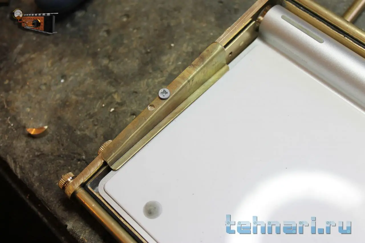 Начал с того, что осмотрел клавиатуру со всех сторон и понял, что разобрать её без последствий не получится, суровые дизайнеры Apple сделали всё возможное для того, чтобы всякие моддеры не издевались над их творениями. Но они просто не знали с кем связались! Решение было простое: раз нельзя разобрать и переделать, то значит надо спрятать саму клавиатуру! Для этого сделаем некий стимпанк-чехол и вложим в него клавиатуру.