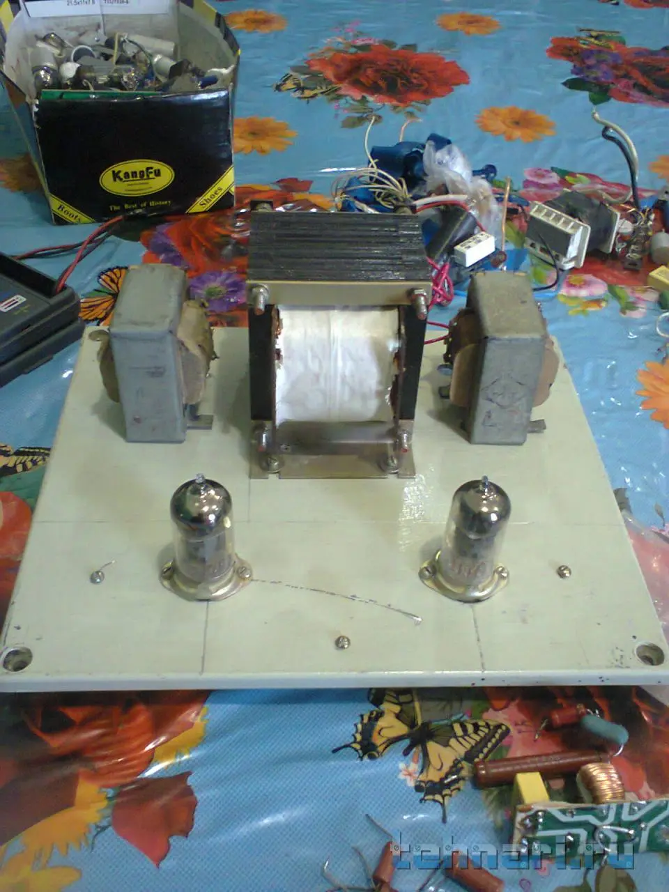 Комплектующие: Радиолампа 6Ф1П, выходной трансформатор ТВЗ 1-9, силовой трансформатор 40 ват. самопальный, а все остальное согласно схемы.