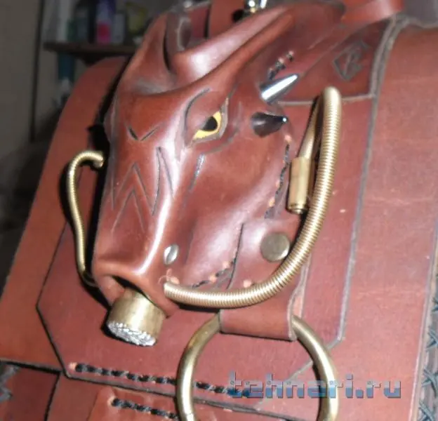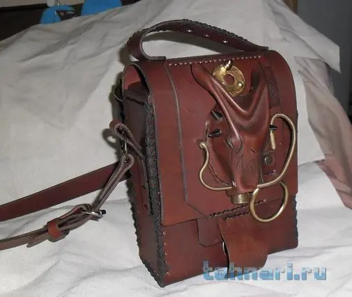 Сделана из кожи. размеры небольшие 24*15*8 сантиметров. Голова дракона сделана из кожи, с ней и было основное веселье :) Переделывал несколько раз, чтобы добиться хоть какой то схожести. Рассчитана на то чтобы носить на поясе или на плече, а можно и как борсетку.