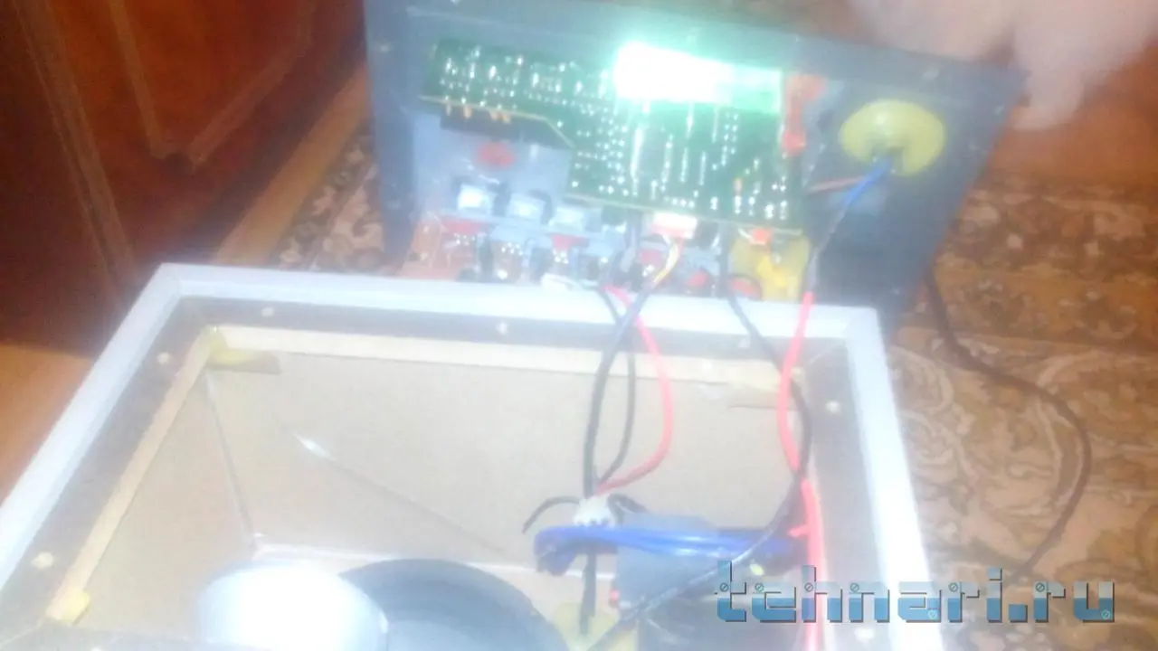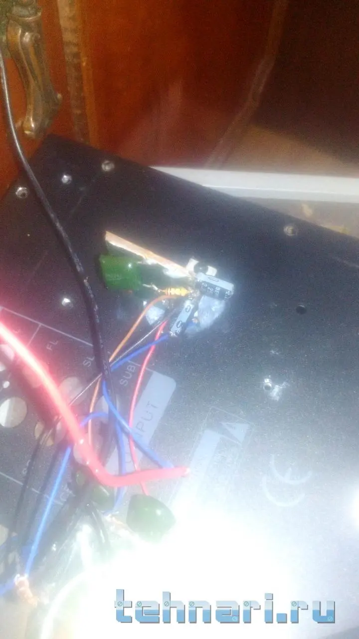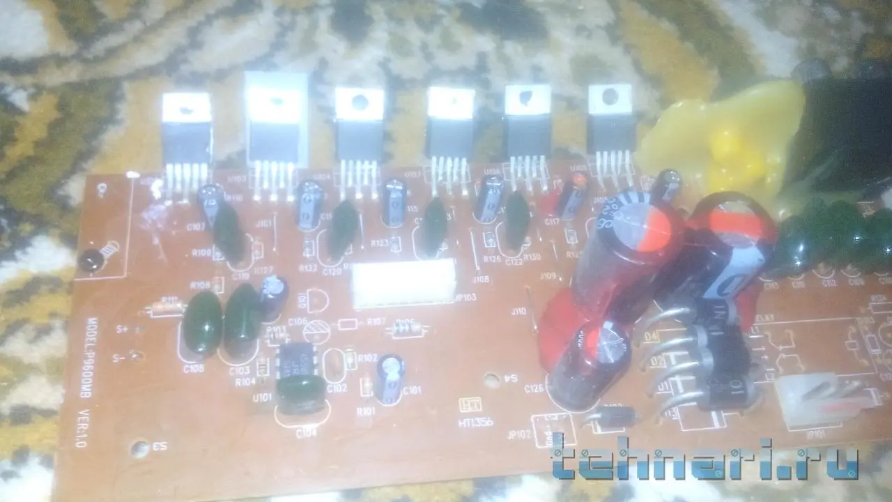 Ни капли задумываясь сей хлам был приобретен. Толчком тому стали фактор цены (500 рублей) и псевдорабочее состояние - питание работает, саб без подачи сигнала не гудит. А больше, собственно, ничего не требовалось. Дистанционки не было в комплекте, на морде саба было три регулятора, никто не претендовал на звук "уши заложило, качество ништяк" - и решение пришло еще при транспортировке девайса в новый дом. А именно - распотрошить, само собой, очень аккуратно (беден еще на инструменты), вынуть плату выхлопа и осмотреться.