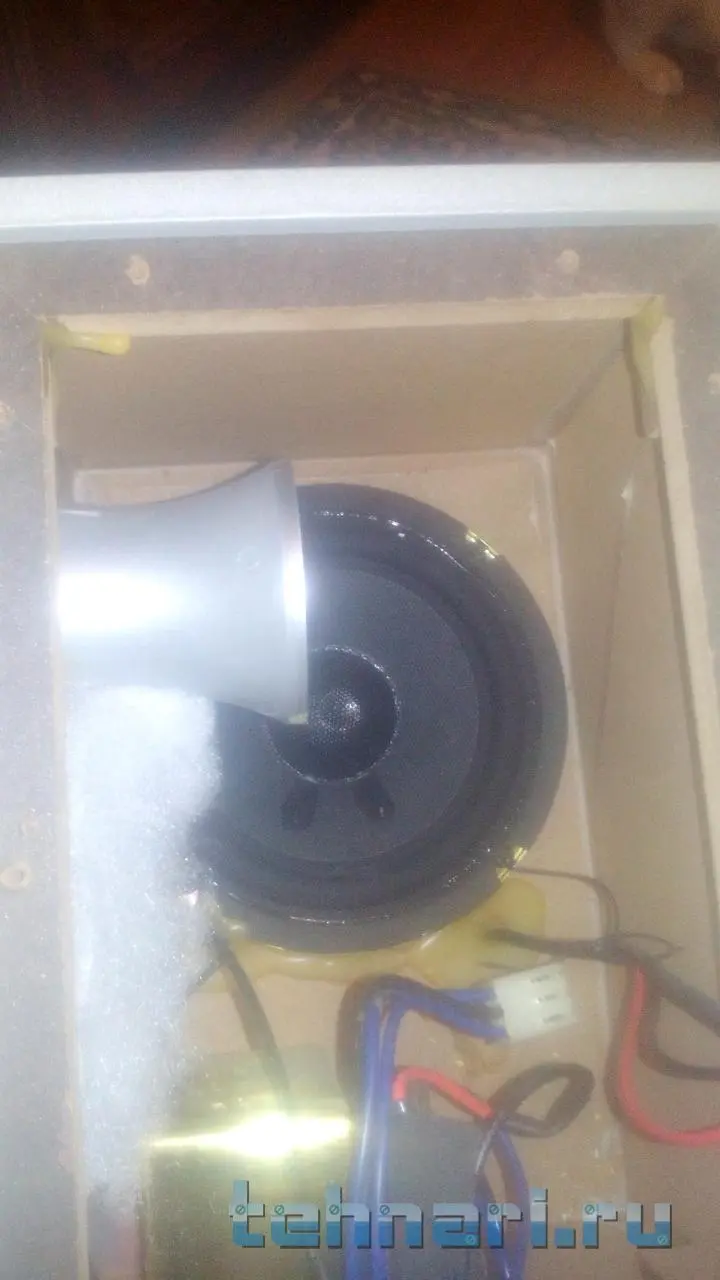 Что хочется сказать. Объем крайне мал - всего литров пять. И это учитывая момент, что одна половина работает с фазоинвертором, а вторая с закрытой частью корпуса. Щит динамика (правильнее было бы сказать ЩИТОЧЕК😆) вмонтирован посередине общего объема.