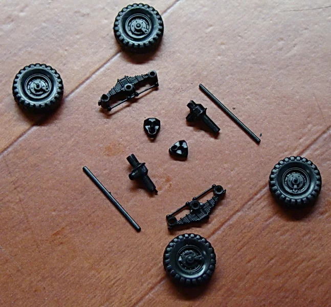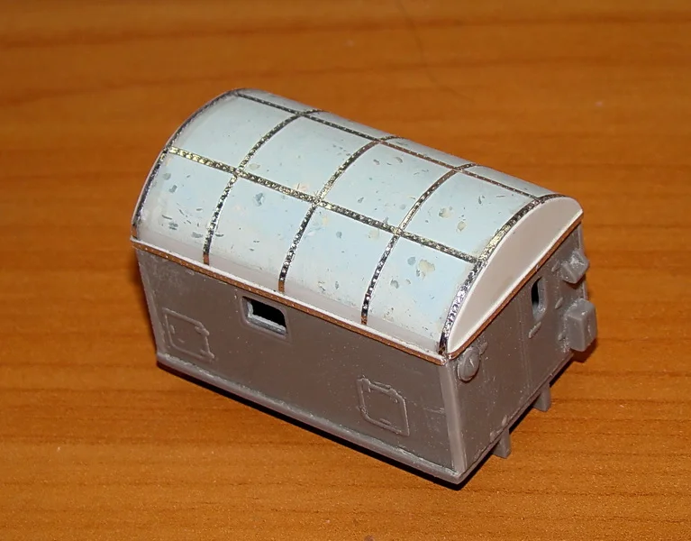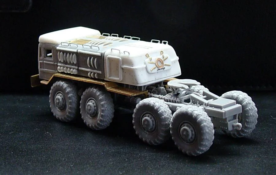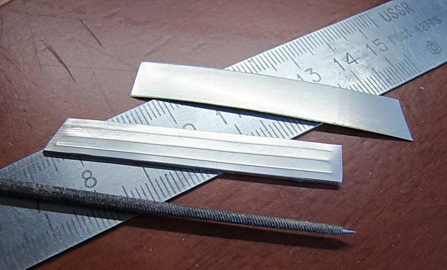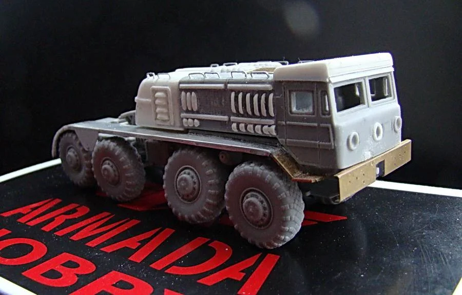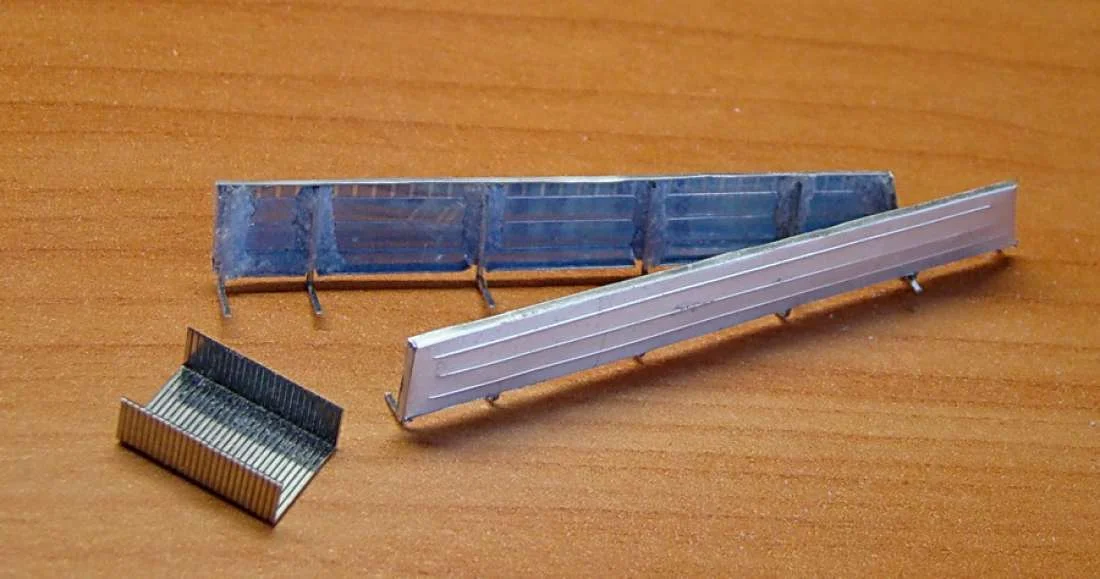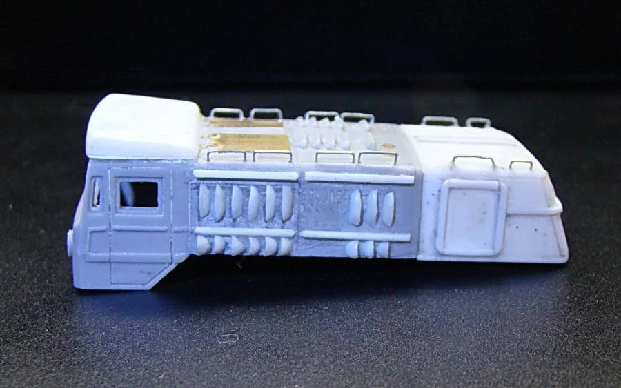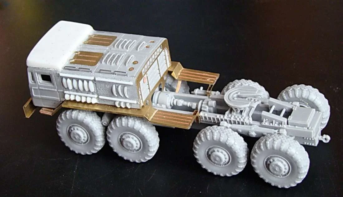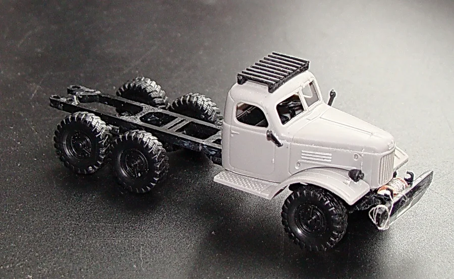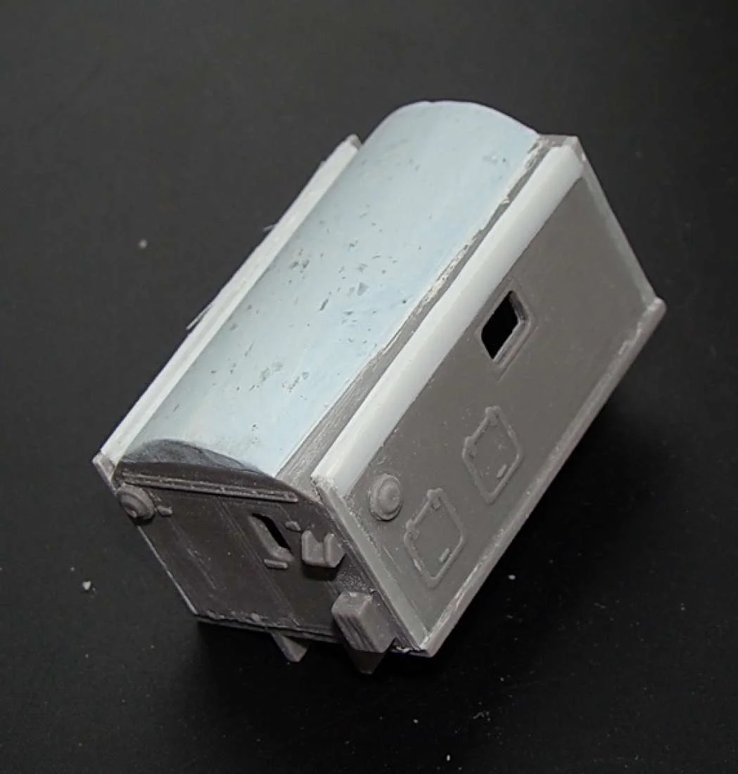 Для изготовления выштамповок воздухозаборной решетки моторного отсека использовал бобышки от полистироловой тары для продуктов.Вырезав бобышку из основания , прошкуриваю ее торец на шкурнике, а затем аккуратно ножом разрезаю ее вдоль осевой линии на две части. Линейные выштамповки на кожухе изготовил из листового полистирола, нарезав тонкие полоски, которые после приклейки немного прошкурил, для придания нужной высоты и конфигурации. А затем вклеил на штатные места выштамповки воздухозаборников. Скобы-поручни изготовил из скобок для степлера и установил на штатные места в предварительно просверленные отверстия, закрепив их клеем.