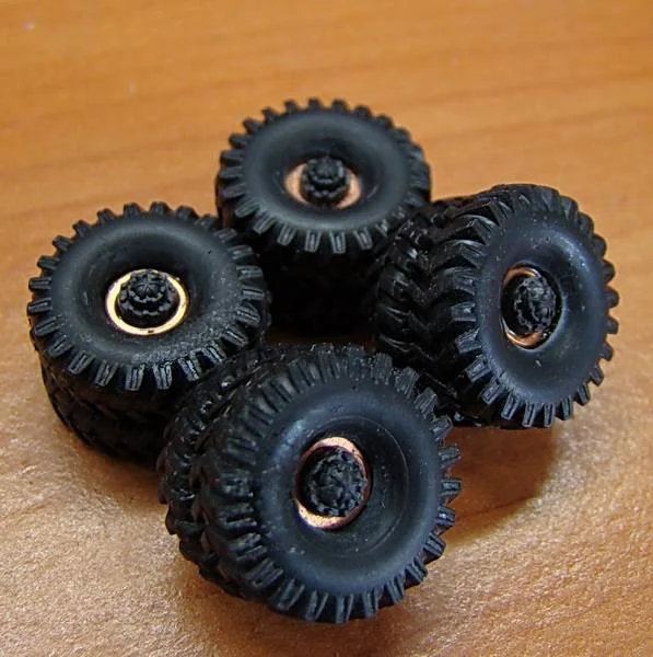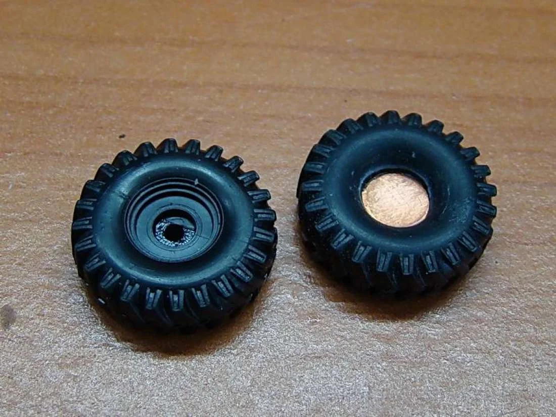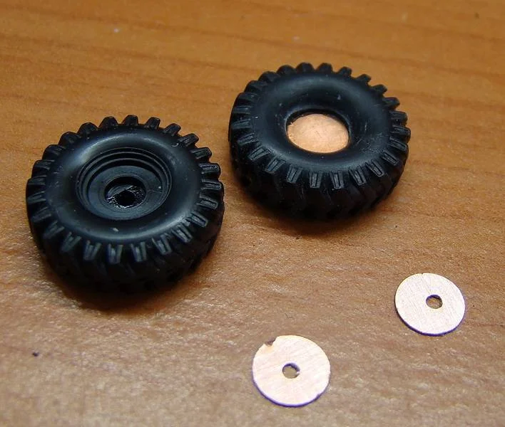 8. В окончание работы приклеил эти ступицы на диск и получил, то что хотел, т.е. двухскатные колеса для стартовой установки "СУРД-1"