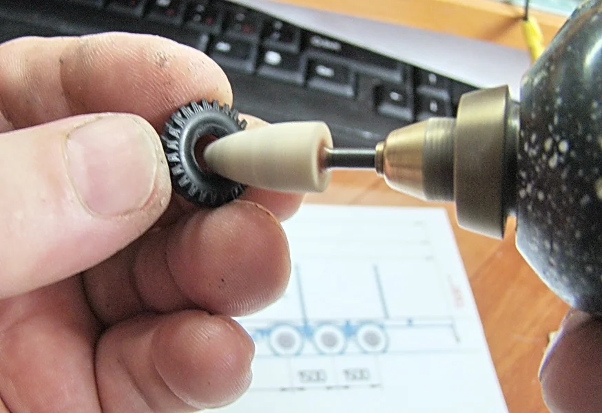 1. При помощи шлифмашинки выбрал центральную часть у 4-х половинок колес.