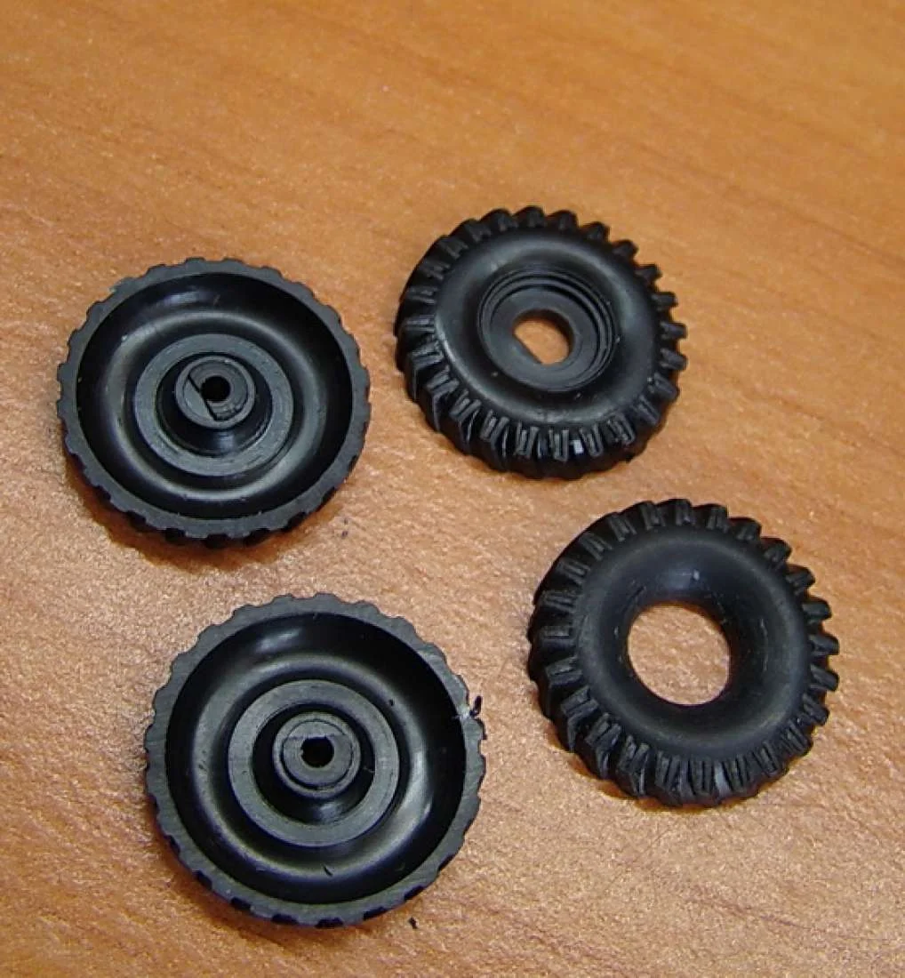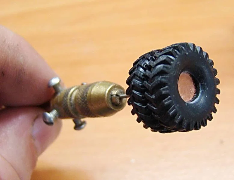 7. Из деталей, представляющих ступицу колеса с подкачивающим устройством от "Урала" вырезал 4 штуки центральных ступиц.