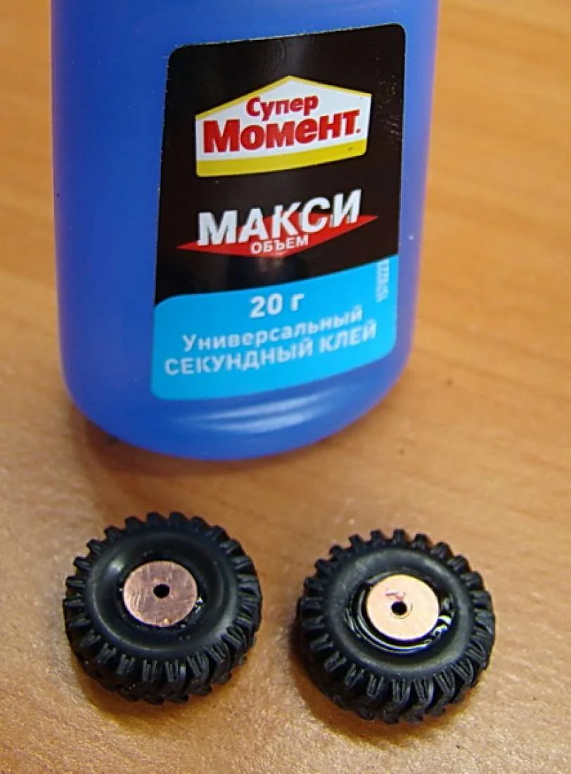 6. Склеил два колеса, в результате получил двухскатную шину.
