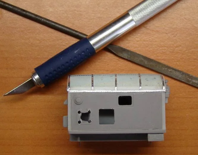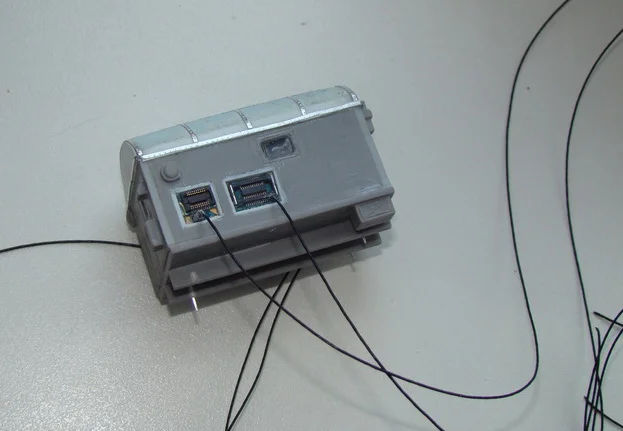 Вклеил ящики с начинкой на положенные места в кунг, из провода МГТФ изготовил кабеля, соединяющие контрольно-пусковую машину с самолетом, снабдив их пока с одной стороны штепсельными разъемами. Из текстолита, толщиной 0.3мм изготовил крышки ящиков, обклеил их лентой-самоклейкой и продавил на ней рисунок крышек.