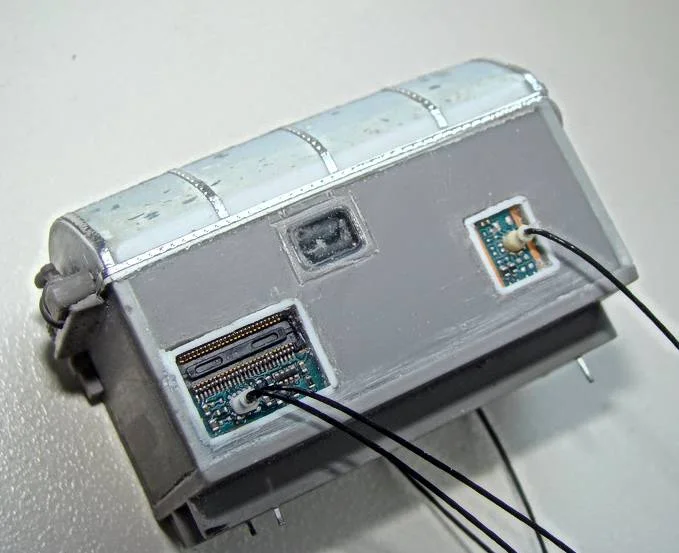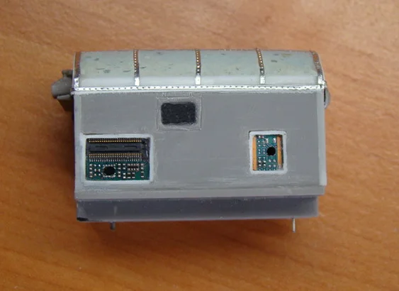 Для наполнения внутренностей ящиков использовал начинку с платы разбитого сотового телефона,вроде получилось неплохо.Участки платы с монтажом использовал в качестве дна ящиков, обклеив их стенками из листового полистирола.