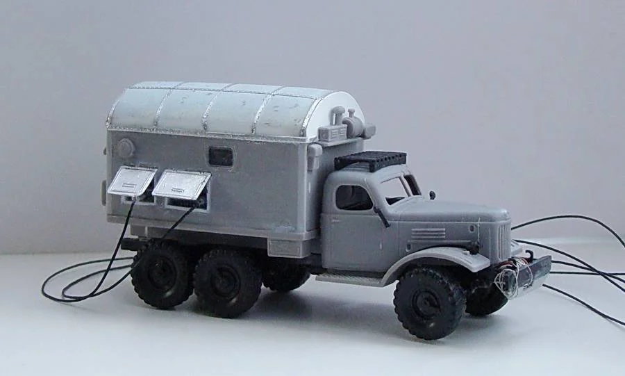 Работа, несмотря на дачные дела, продолжается, но вошла в полосу подробного изучения фотоматериала, поэтому пока выкладывать обильные фото с процессом не получается. Приобрел хорошую монографию по советским БПЛА первого поколения, описание процесса работы с Ту-123 очень хорошее, помогает расшифровывать наличие некоторых элементов конструкции прицепа, предназначение которых и принцип работы был не совсем ясен.Покадрово просмотрел фрагмент фильма о подготовке и запуске Ту-123, тоже кое-что уяснил для себя и занялся эскизной прорисовкой всего стартового комплекса., чтобы уже затем приступить к изготовлению деталей и сборке.В процессе изучения новых материалов из монографии, выяснил, что дополнительный блок на тягаче, стоящий за моторным отсеком, как я и предполагал, является электрогенератором, обеспечивающим энергией все системы пусковой установки. А заодно увидел, что задняя панель электрогенератора имеет совсем другой вид, чем тот, который я выполнил в модели. Переделка не заставила себя долго ждать. На кунг ЗиЛ-157 установил систему отопления , а также запасное колесо.