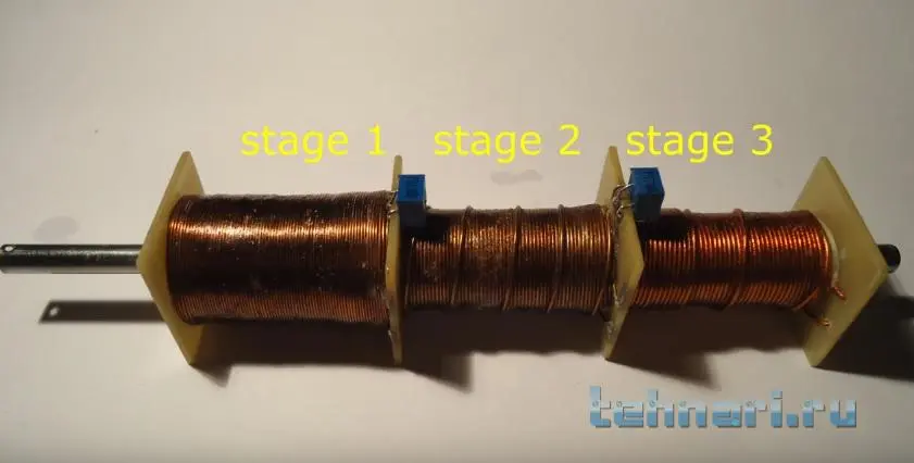 каждая батарея будет последовательно разряжаться на свой соленоид, создавая в нем магнитное поле