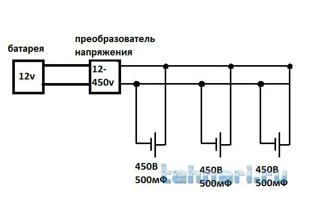 почему не общий выпрямитель - тогда достаточно было бы одного элемента контроля? что вообще будет делать каждая отдельная батарея конденсаторов после заряда, какой смысл устройства?