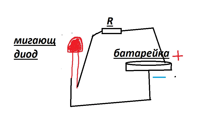 Батарея "Крона" обладает очень небольшой ёмкостью, лучше использовать алкалиновые элементы типа "ААА" или "АА", но лучше всего аккумулятора того же типоразмера. Тем более, сто их понадобится всего две штуки - мигающие светодиоды расчитаны на напряжение 3-5 вольт.