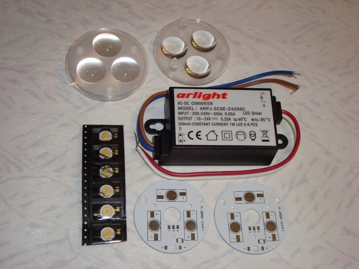 В догонку скажу - эти светики неплохо греются. Рабочая же температура для них (насколько помню) - не выше 80 градусов по Цельсию. Так что, возможно, понадобится ещё и небольшой радиатор.