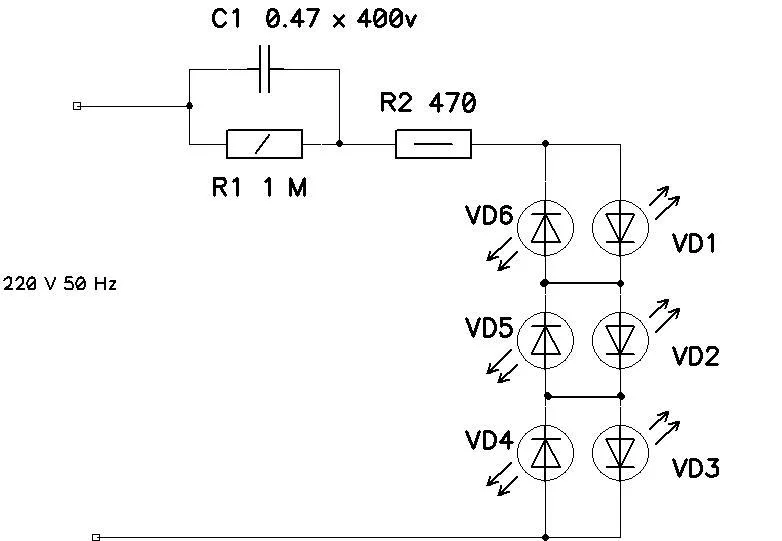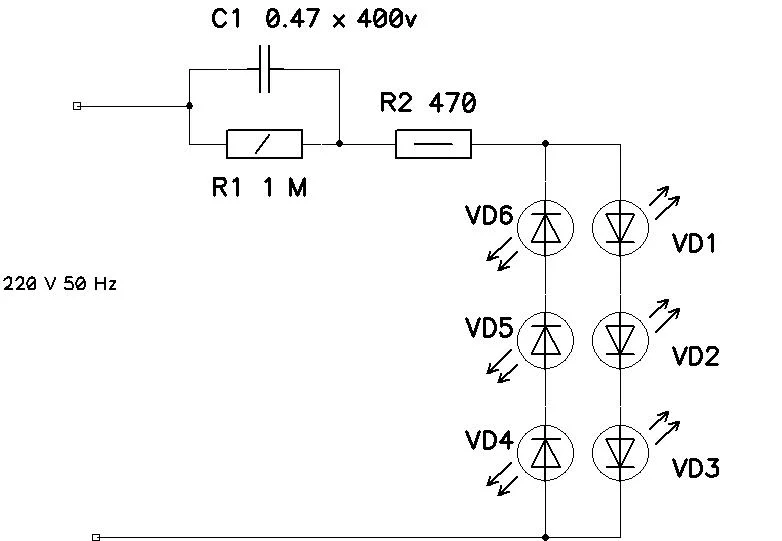 Также был произведен опыт с зарядкой конденсаторов через диод до амплитудного напряжения сети 310В с последующей разрядкой через цепочки. Светодиоды слегка вспыхивали, но ни один не сгорел.