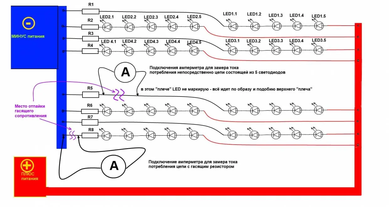 Сейчас порисую комикс подключения диодов на плате и посчитаем нагрузку вместе, заодно на комиксе будет легче нарисовать где нужно замеры сделать.