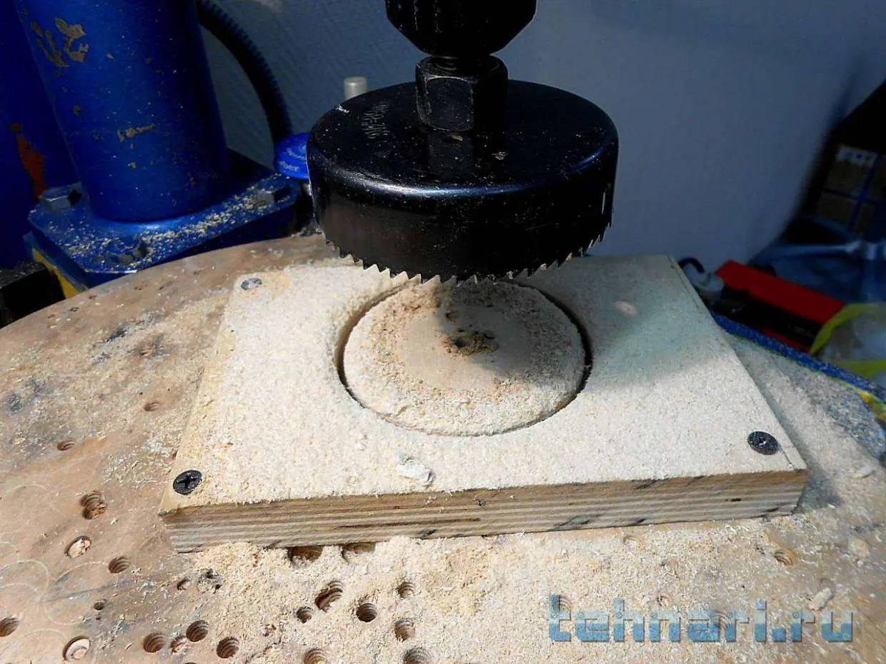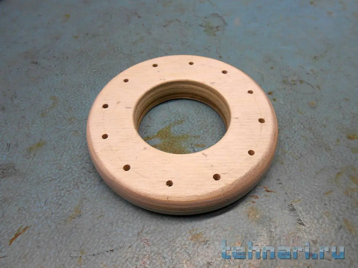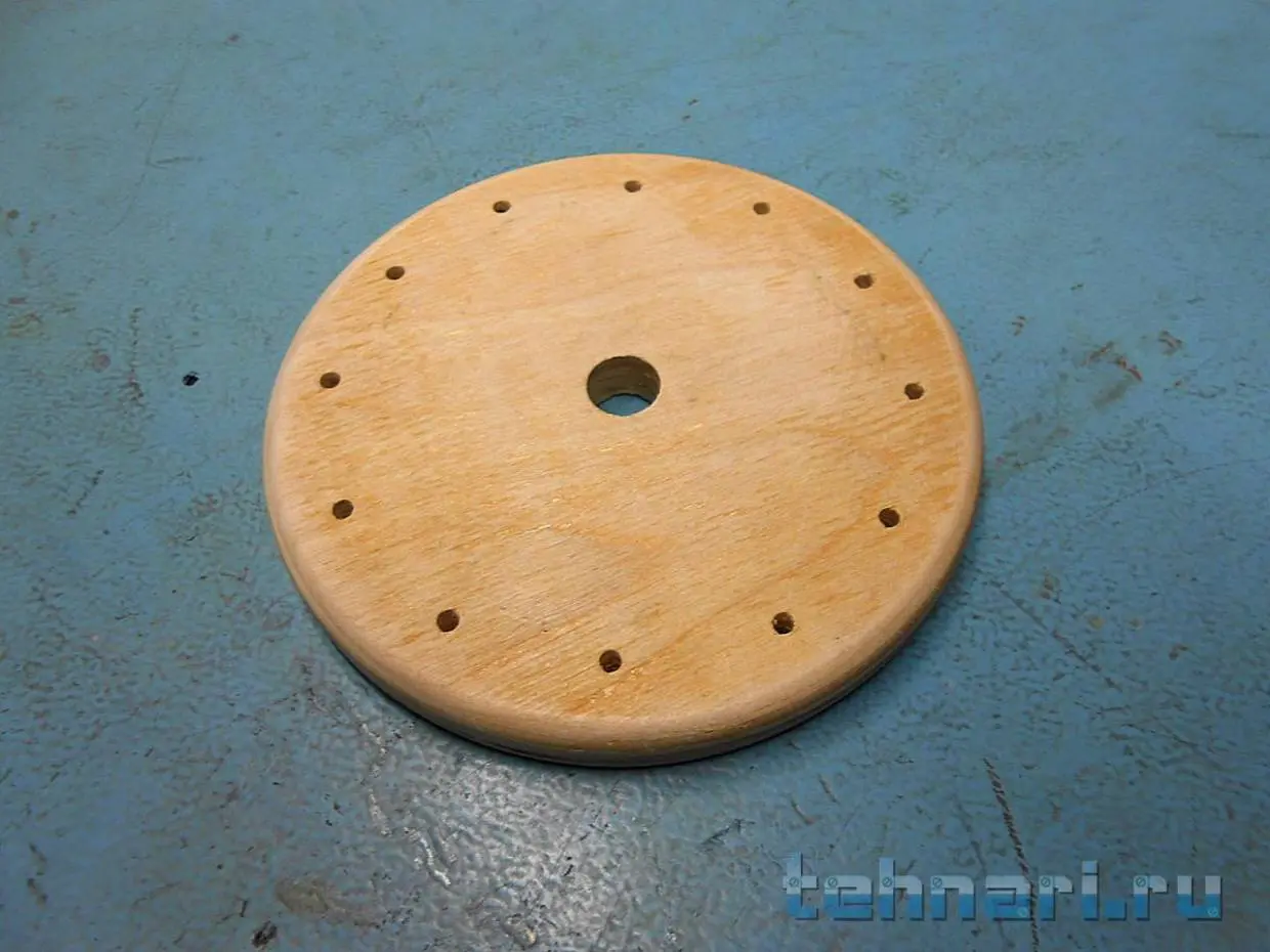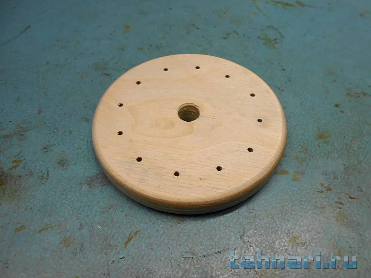 И просверлил несколько отверстий, по кругу, в заготовке из фанеры