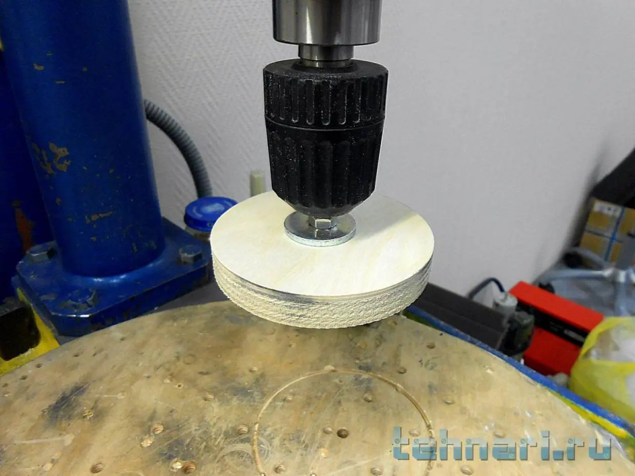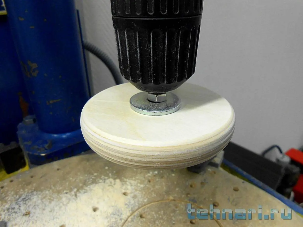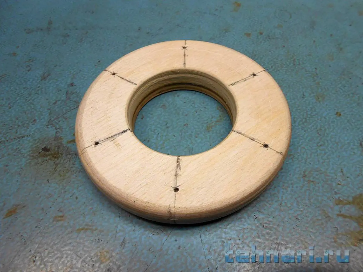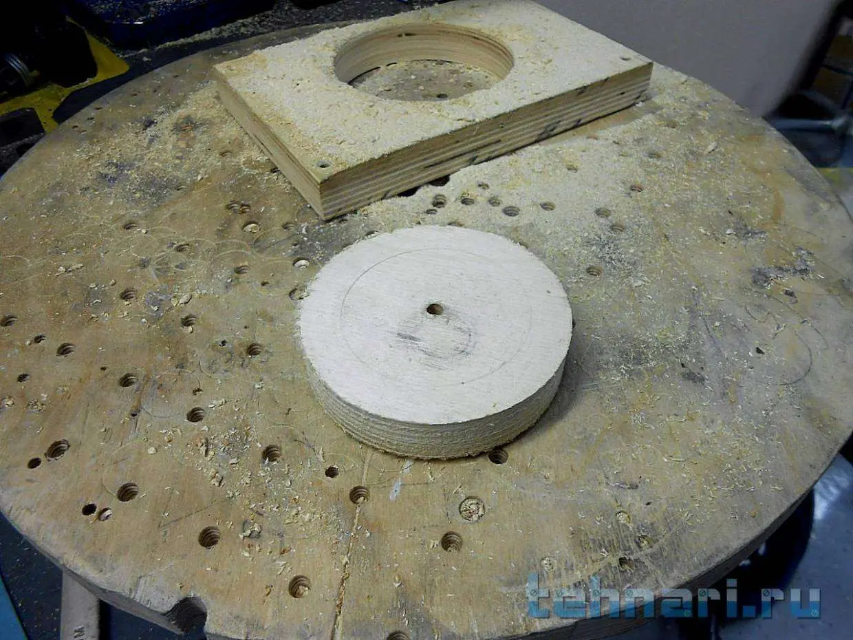 Отрезал ещё один круг из фанеры, чуть большего диаметра