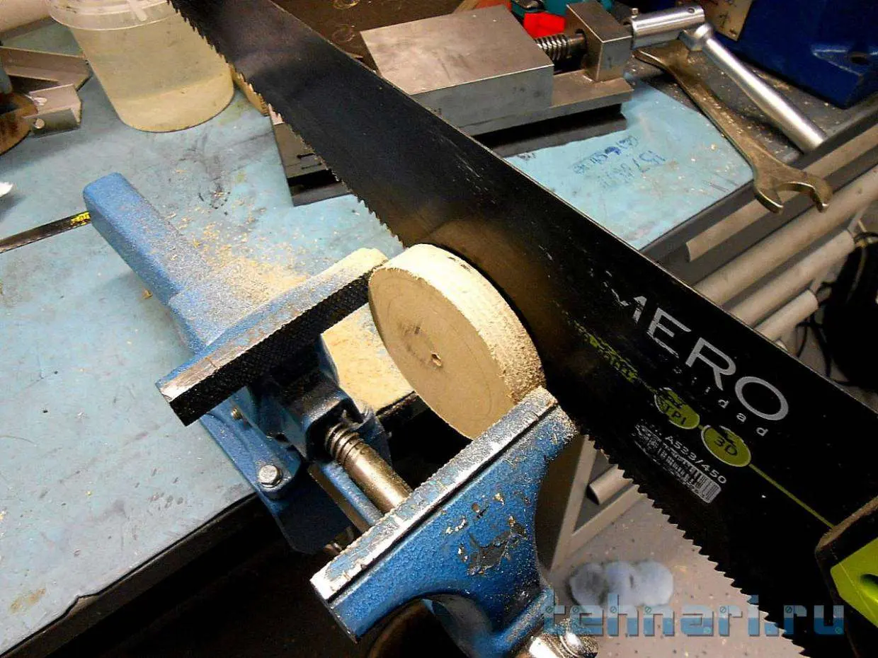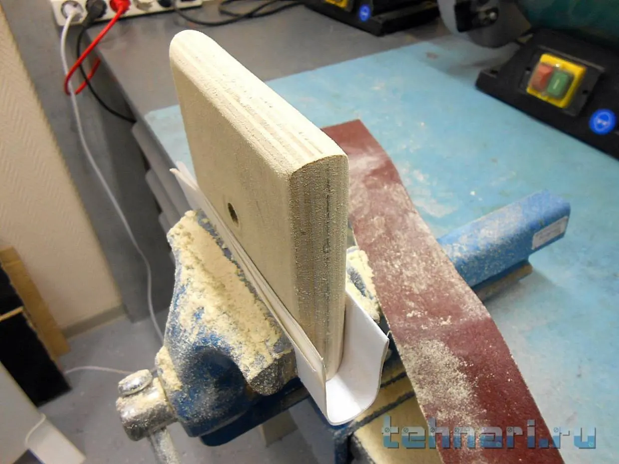 Зажав её в тисках при помощи наждачной бумаги закруглил края