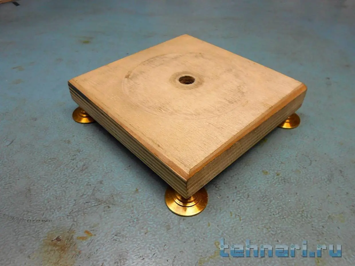 я присмотрелся и полностью с ним согласился, поэтому решил переделать конструкцию нижней части. В голове появились кое какие мысли, и я приступил к работе. Вырезал круг из фанеры