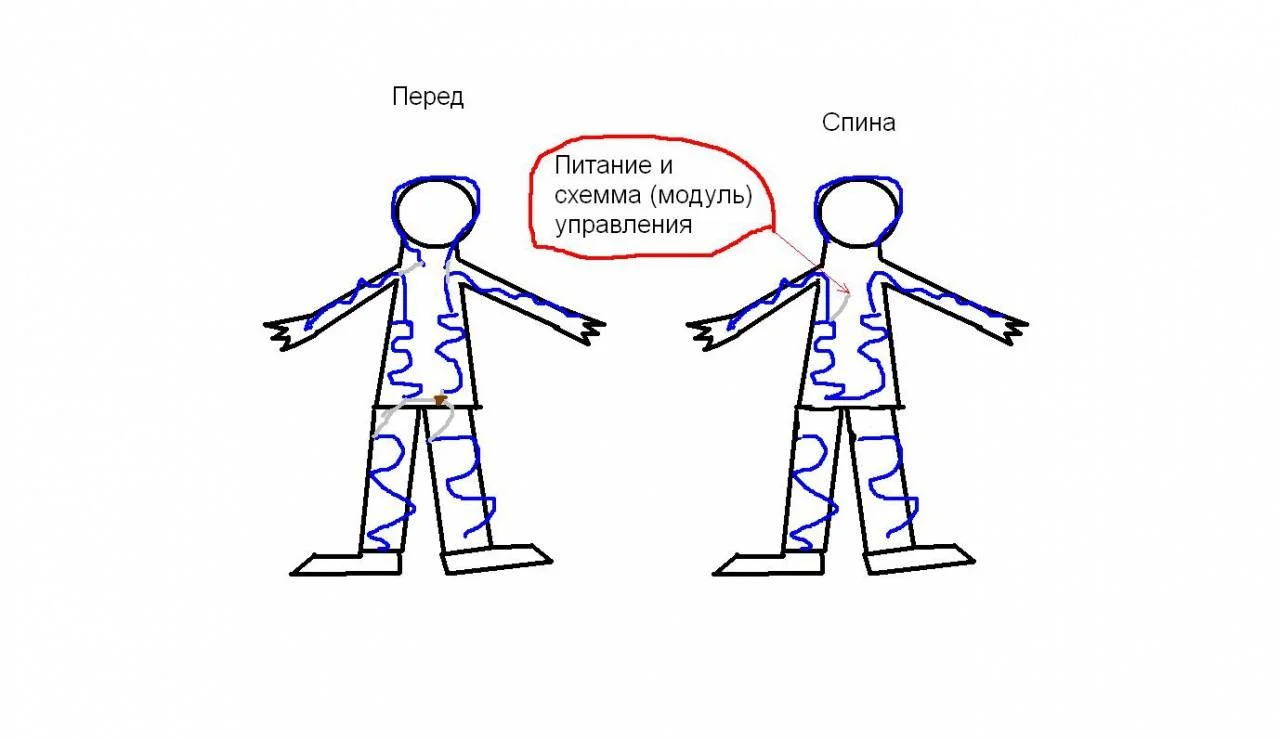 Туда по плану подразумевалось засунуть платку, котрая бы управляла свечением костюма, а именно включением и выключением ленты в нужных местах музыки автоматически, под громкие биты))) и конечно же туда надо запихать питание для неё и светящейся ленты