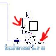 Подскажите пожалуйста номиналы транзистора и диода в транзисторном ключе, не могу разобрать?
