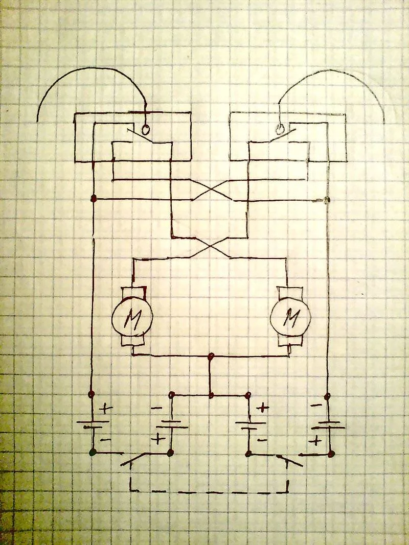 посредине. Иначе последовательно два двигателя всегда будут подключены