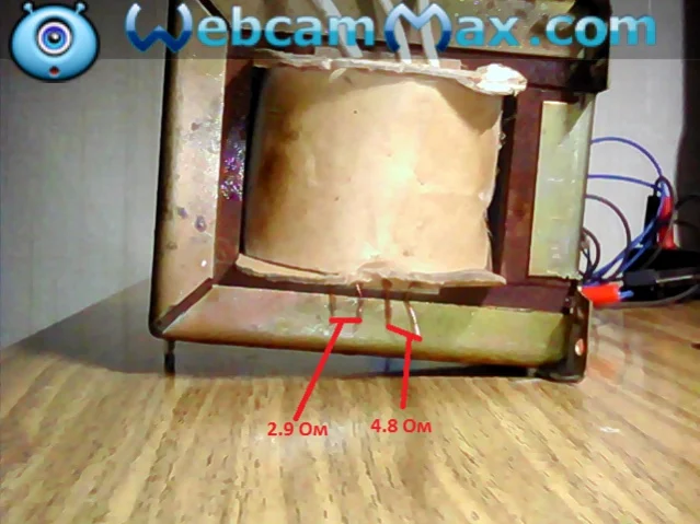 Вот данные на этот трансформатор, сопротивление двух обмоток на 110В по 2,6 Ома, для 220В соединяете их последовательно