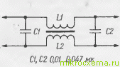 Потом конденсатор > ВЧ дроссель от Импульсника > снова конденсатор > трансформатор.