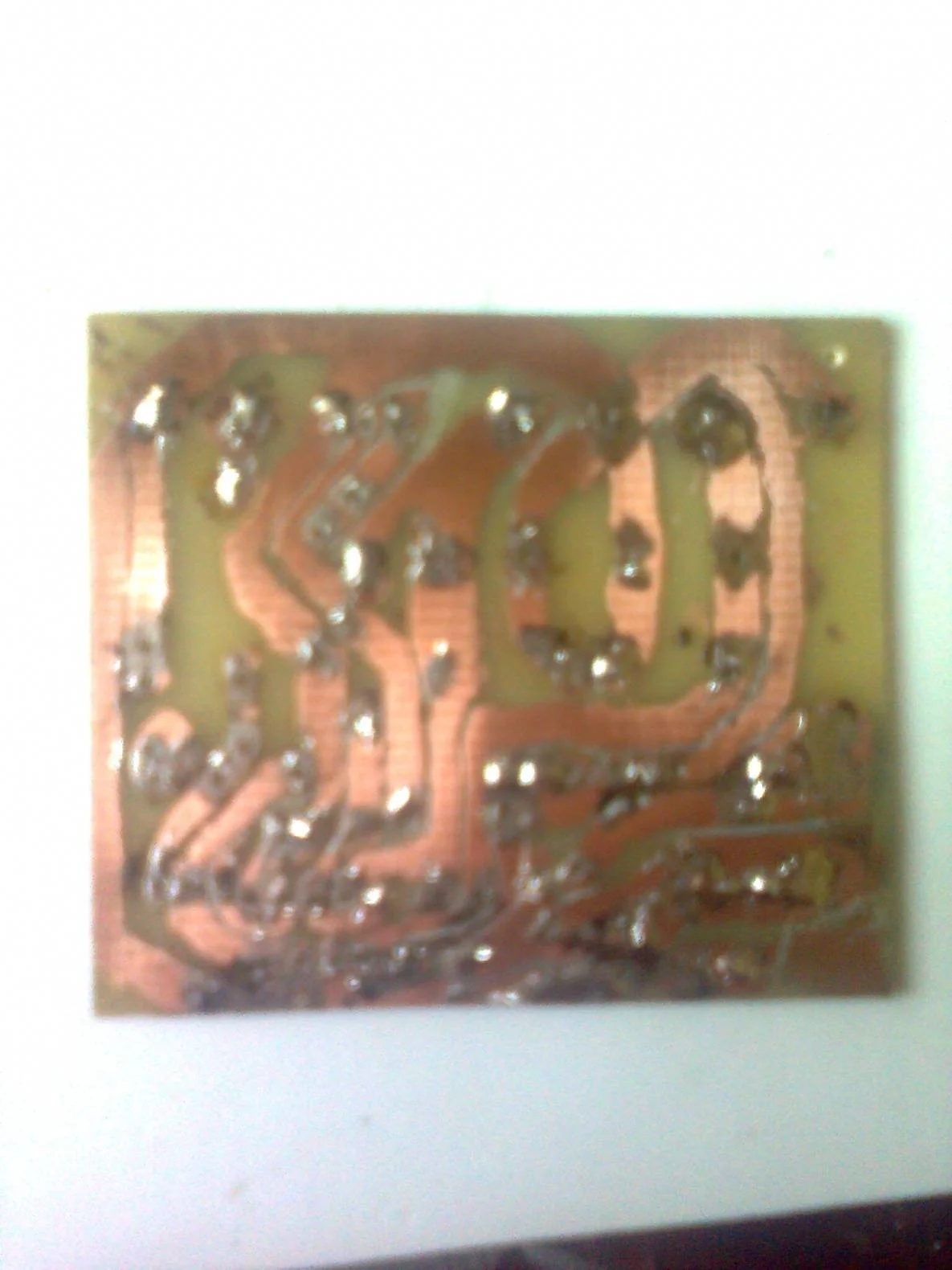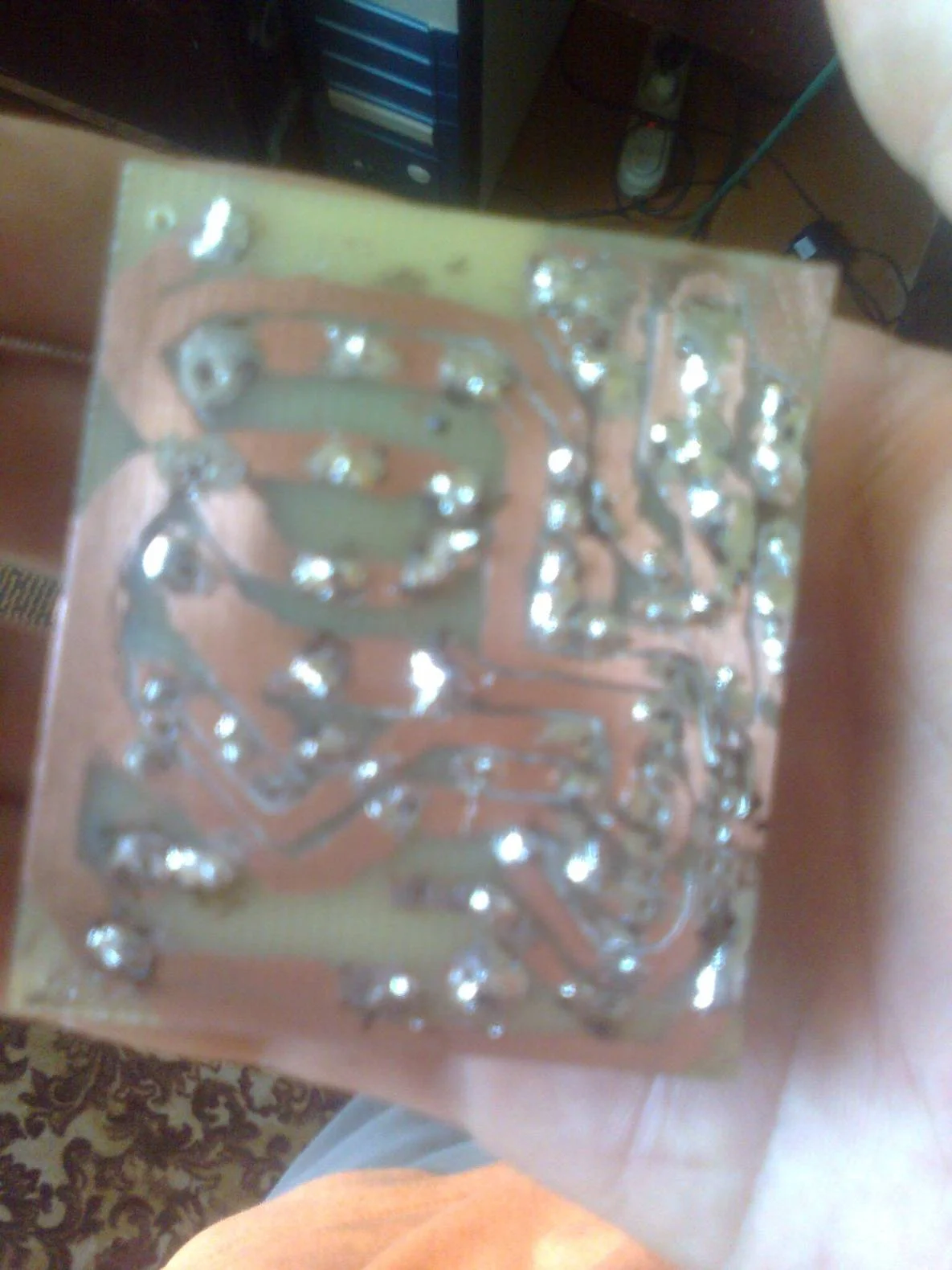 Вот что впаял (все, кроме микросхемы и диода), эта печатка хуже получилась, сейчас делаю вторую, на ней меньше слипшихся дорожек, не пинайте сильно