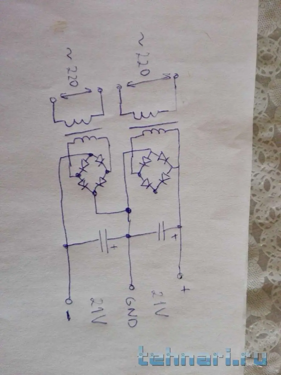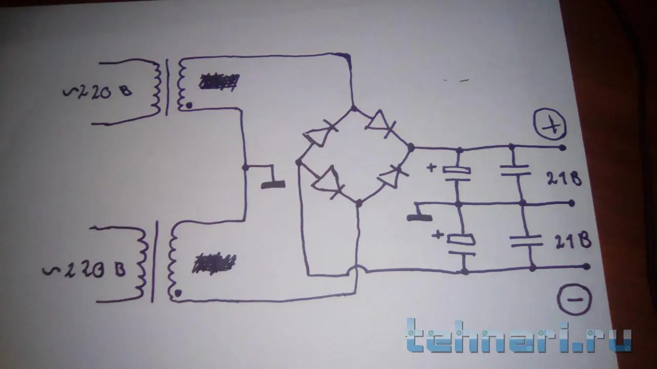 С блоком питания ничего особенного 2 ТР , 2 моста , 2 конденсатора