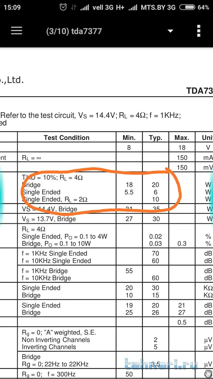 Это я вижу, только суть вопроса в том, что если я включу динамики параллельно то будет 2 ома, а тда 7377 на два ома выдаёт 10 ватт, а какая номинальная мощность ас с двумя динамиками(10гд-34) в колонке будет при параллельном включении?