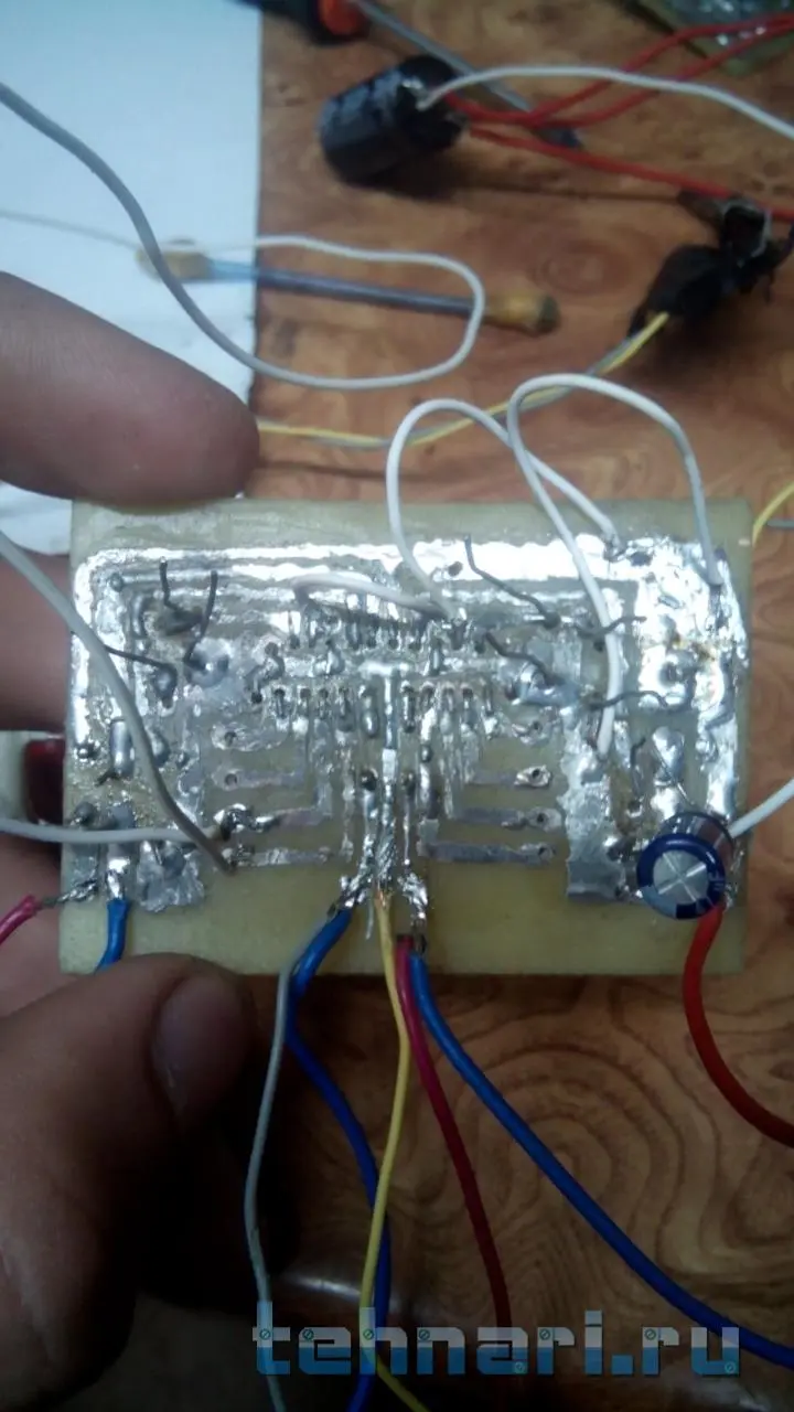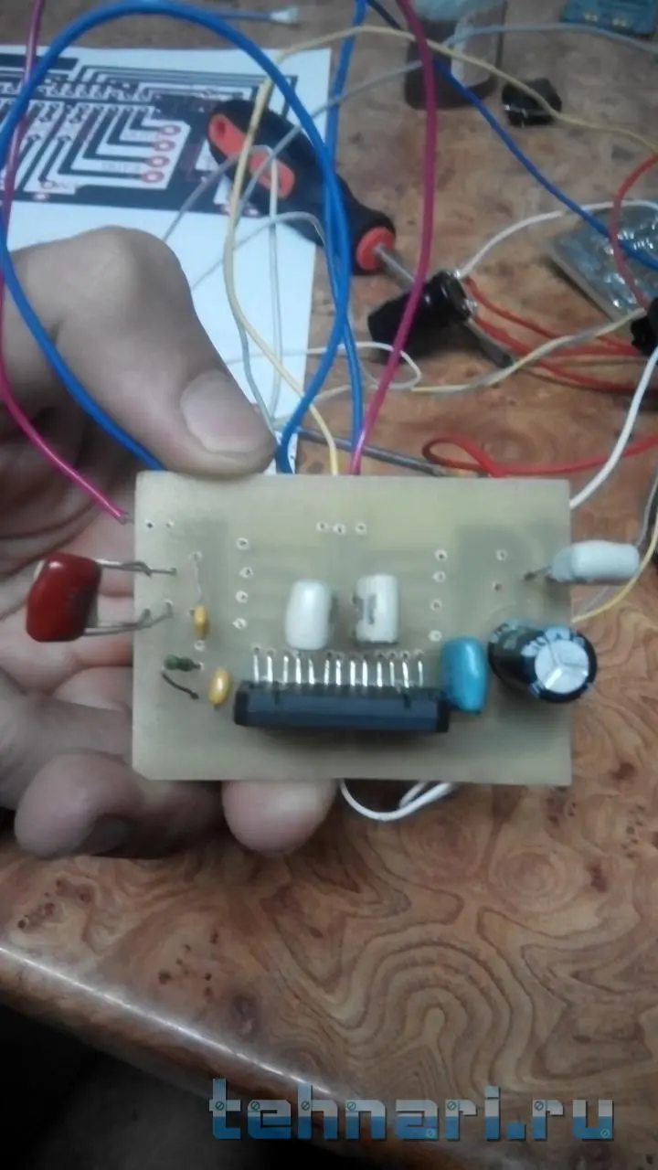 Я извиняюсь за фото уже выложил. Питания транс на 12 в фильтр 3300мк, кондисатор так для пробы будет работать делал по печати эти что на фото.