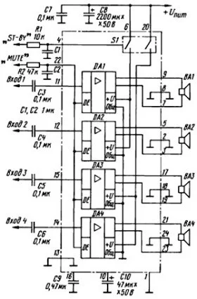 И еще прими для коллекции. Ток не 4х50 а при пит до 18в и токе до 6А- МАХ 4х45при 10% искажений.