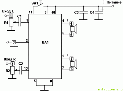 Вот в догонку и схема с платой R1.2- 22-50k. C1.2- 0.22M/kd. C3- 0.1M/kd1. C4- 22000Mx25v.