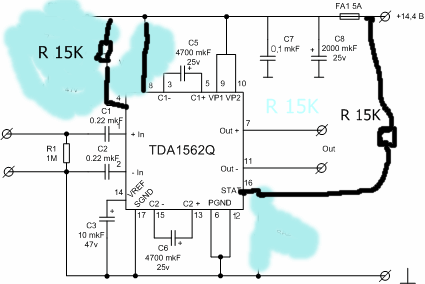 кто может нарисоват схему печат платы без режимов mute и stebdby короче просто нужно чтоб при питании работал и все дополнительные примочки не нужны
