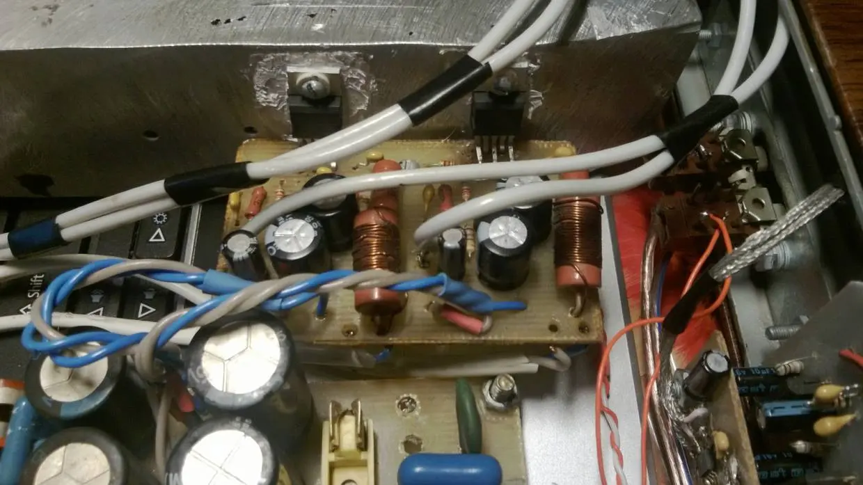 Буть бы у меня такая проблема,я бы ее в помойку выкинул.Выпаял ТДА а остальное в топку,новая плата,новые компоненты и проверенные мультиметром емкости и сопротивление.точнее их номиналы,УДАЧИ.И платку просто с ДАТАШИТ и зачем изобретать? все есть и только руки чут-чуть приложить и все сложится и заработает как нам этого хочется, У меня все.когда-то дорожки были нормальными,но после пары раз перепаивания микросхем и буферных емкостей они стали сползать с платы,поэтому пришлось их укрепить проволкой и припоем...от этого такой "ужастный вид" сейчас буду выпаивать резисторы и проверять...