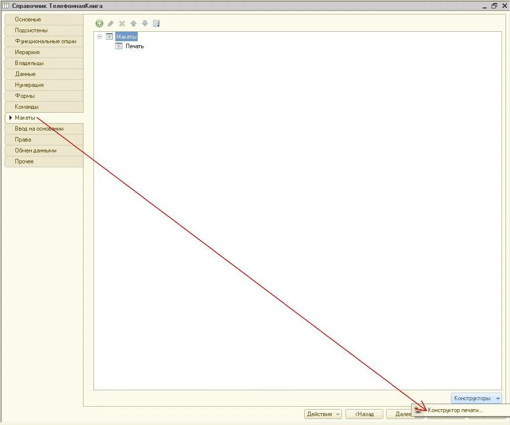На Вкладке «Макеты» можно создать печатную форму используя «Конструктор печати».