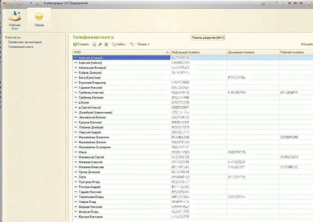 За свою сравнительно короткую жизнь я 2 раза терял мобильник, на которых было записано масса нужных мне телефонных номеров. Опять же никто не застрахован, что у необходимого на сегодняшний день гаджета не слетит прошивка, в следствии заводского брака и не унесет за собой сохраненные на нем контакты. Именно это подтолкнуло меня на создание телефонной книги в среде 1С, в которой будут храниться все необходимые контакты. Многие из Вас скажут, зачем нужен телефонный справочник в 1С, когда в любой типовой конфигурации предусмотрен справочник «Контрагенты», где собственно и хранится вся информация? Отвечаю: ну не буду же я забивать в справочник «Контрагенты» всех своих родных и друзей. Да и потом, я не хочу, чтобы кто-то из пользователей 1С видел мои личные данные. В данной статье будет рассмотрен пример по реализации задачи с нуля, а уже реализовать это на типовой конфигурации не составит труда.