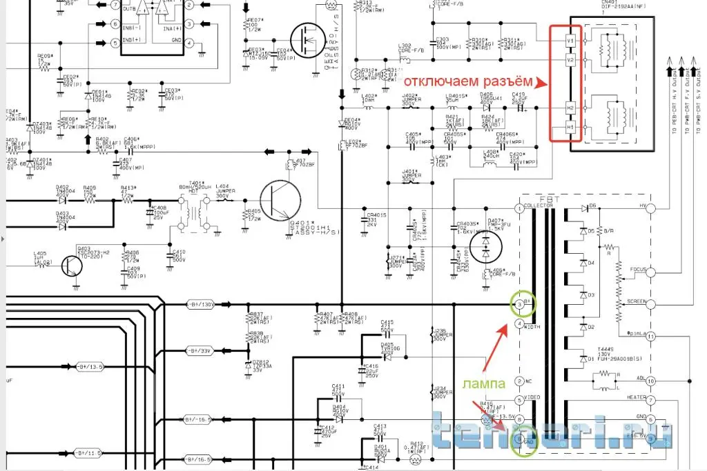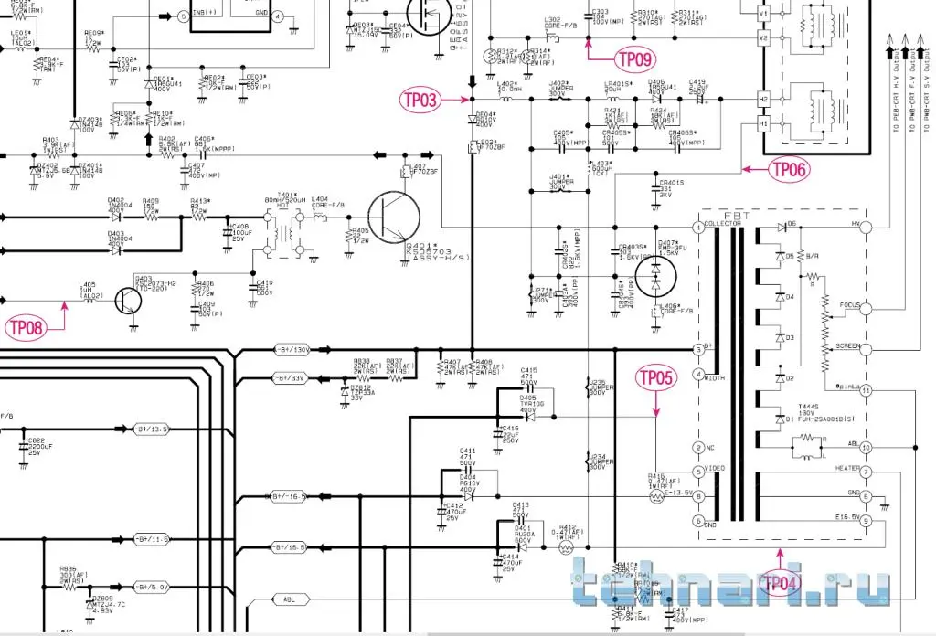 Всем привет! Тёща попросила отремонтировать телевизор, местный мастер не взялся. В один прекрасный момент телек просто не включился, светодиод на передней панели не горит. Телевизор находится за 40км от меня, первичный осмотр на месте и очистка от пыли ничего подозрительного не выявил. Решено было везти к себе. Я IT специалист, но некоторый опыт в ремонте электроники есть. Итак имеем шасси S56A, схему скачал. Марку кинескопа и др. параметры смогу предоставить при необходимости. Т.к. аппарат 2003 года проверяю все электролиты на плате прибором ESR-micro v4.0s. Итог 7 мелких электролитов под замену т.к. завышено ESR. Самым "уставшим" был конденсатор С419 2,2мкф на 250В( 1,3мкф ESR53 на приборе) стоящий в цепи HOT. Заменил его на 2,2х400В. Смотрю HOT: стоит 2001HI (обычный NPN без диода), пробит по всем ногам. Заказываю у китайцев два транзистора таких же. Перед установкой проверяю их тестером транзисторов (фото вложении), ничего криминального оба транзистора практически идентичные по параметрам. Запаиваю в плату и включаю. Изображение не появляется, рукой чувствую появилось высокое на кинескопе, также слышн свист и врещание из корпуса. Откуда неясно, т.к. закрутил крышку подумав, что ремонт окончен ( чинил успешно до этого 2 панасоника заменой HOT и кандёров). Через несколько секунд высокое и свист пропали, услышал цыканье уходящего в защиту блока питания. Приехали, наверное опять HOT умер. Вскрываю так и есть. Но умер не так, как первый, а звонится как 2 диода. Фото прилагаю. Проверил конденсатор С406 на 1600V он в норме. Почитал про типичные неисправности шасси S56A в инете. В результате был проверен R825 и индуктивность L402, отклонения от номинала не обнаружил. Двигаюсь дальше. Узнал, что часто мрут на TVsamsung этой серии ТДКС. Выпаял его, маркировка FFA61012K. Внешне без повреждений. Как проверить? Есть приборы BR886A и FBTest, осцил.С-94(по работе ещё заказалиJINHAN jds2023 с встроенным генератором скоро будет) , но не разу не проверял подобные вещи и не знаю распиновку. Гуру подскажите что и как. Так же не исключаю такой вариант, что транзисторы китайцы палёные продали и они не держат нагрузку.Читал тему тут же на форуме про ремонт аппарата на этом шасси. В ней пользователь Николай_С давал консультацию по ремонту, мне понравилось, сразу видно спеца. Думаю в дальнейшем проверить напряжения, вот только не знаю можно ли сделать это отдельно на столе подключая только плату или лучше с кинескопом всё таки. Поделитесь опытом... Всем заранее спасибо, за советы и подсказки по ремонту.
