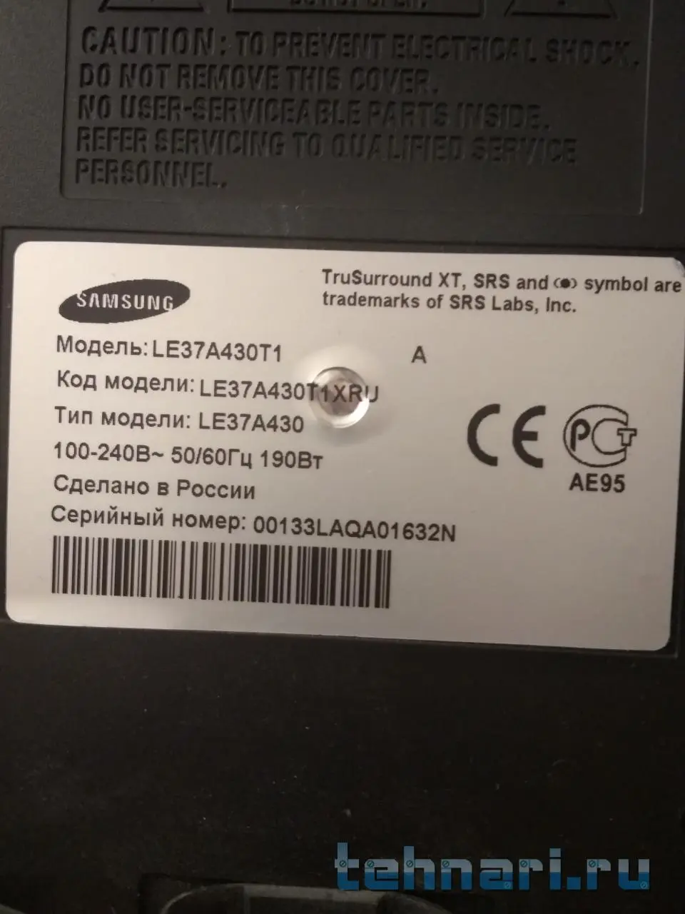 Телевизор SAMSUNG LE37A430: изображение в негативе