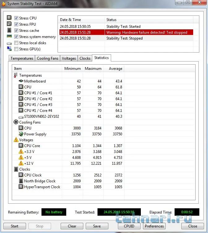5.замена термо пасты 2 раза, когда заменил термопасту время дошло выше 2 минут, до земены термопасты теста хватало на 1,20