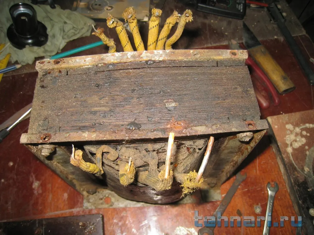 Трансформатор весь пропитан клеем и маслом с химией (последние это уже результат эксплуатации на офсетном станке на котором он стоял, масло там лилось рекой на него, и химия попадала когда станок после отпечатки тиража мылся).