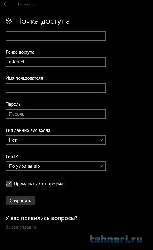 "Internet" и галочку "применить этот профиль"-"сохранить". Теперь всё в порядке!