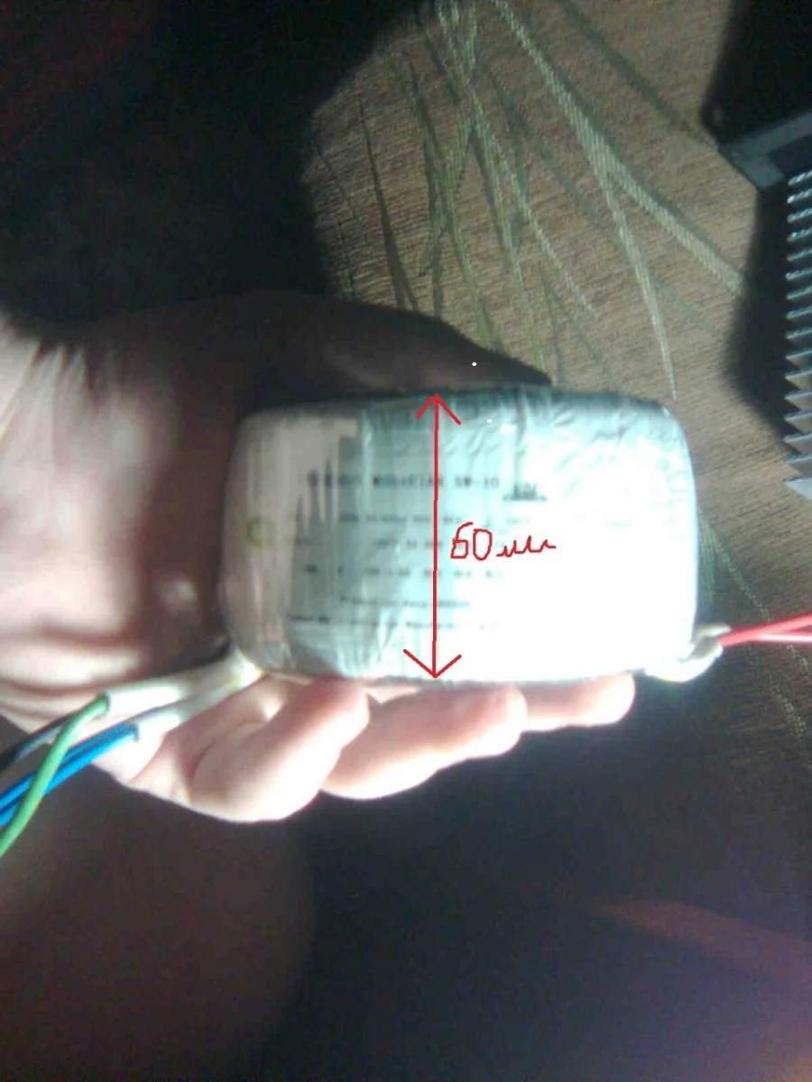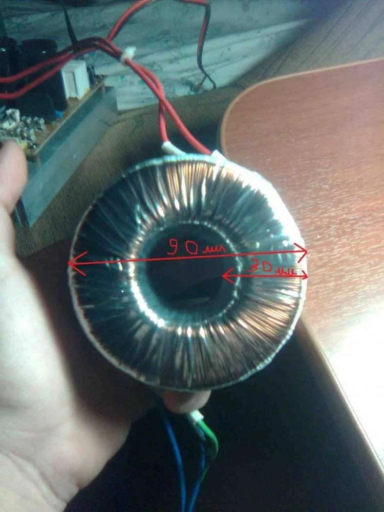 Я все-таки купил сабвуфер от BBK SW-10 Musician, и первым же делом разобрал его. В нем был тороидальный трансформатор, имеющий следующие хар-ки: