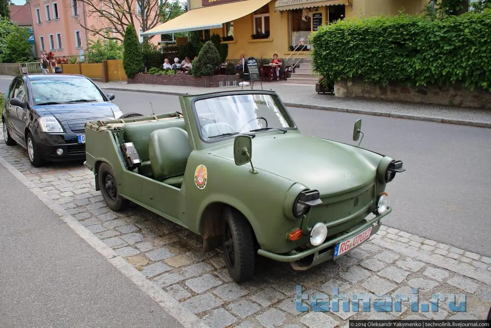 Продолжаю чистить фотоархив.. Трабант (спутник), ласково траби.. Культовый и наиболее распространенный автомобиль ГДР, всего их наклеили более 3 150 000 шт. разных моделей с 1957 по 1990 год. Стальная рама, кузов-обвеска из отходов тканевого производства (очесов) пропитанных фенол-формальдегидной смолой с введением красителя, что резко снизило производственные затраты. Передний привод, 3 ступенчатая коробка с мотоциклетным алгоритмом переключения, поперечный двухтактный двигатель воздушного охлаждения от 18 до 26 л.с. Топливо - самотеком, отопление - забор части воздуха после цилиндров, для замера уровня топлива в баке прилагалась специальная палочка! Прост как пятак.. В 80-е, будучи здесь в командировке, ездил на них, и довольно много. Что сказать? Очень надежен, комфорт приемлемый, 200 км от завода до торгового представительства в Берлине легко преодолевал за 3 - 3,5 часа. Для покупки нужно было подождать от 3 (в начале) до 10 лет, стоимость - зарплата рабочего менее чем за год. На дорогах их много до сих пор, как правило это второй или третий автомобиль в семье для коротких летних поездок, так же популярен у школьников и студентов. Вполне рабочий стоит от 150 до 300 евро, тюнингованый (а их много) до 2 - 5 тысяч.