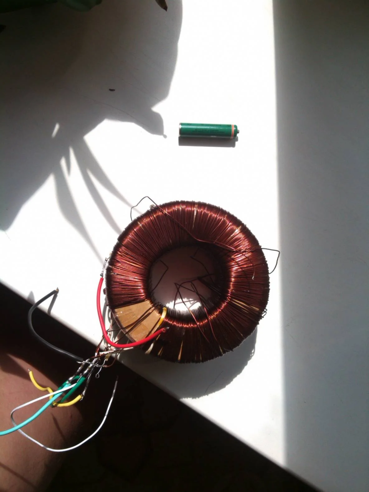 Собираюсь делать БП для УМ... Dual mono 2x100. кпд 82% или около того... Был у меня трансформатор, только не кидайте помидорами, он с мусорки. Пробило первичную обмотку, а зацепило все, ну и пришлось смотать. Теперь мы имеем железо от тороидального трансформатора, размеры на фото> Вопрос заключается в том, сколько с него можно снять номинальной мощности (замете, не выжать, мне номинал нужен!) в крайнем случае у меня припасён ТП190-4. И можно ли моточные данные на сие железо? То есть мне нужно знать сколько витков, каким проводом, какого сечения и какая при этом сила будет протекать?